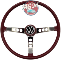 Volante para fusca, Kombi 76 em diante, Brasilia,Variant estria fina vinho e haste cromada com botão Wolfsburg