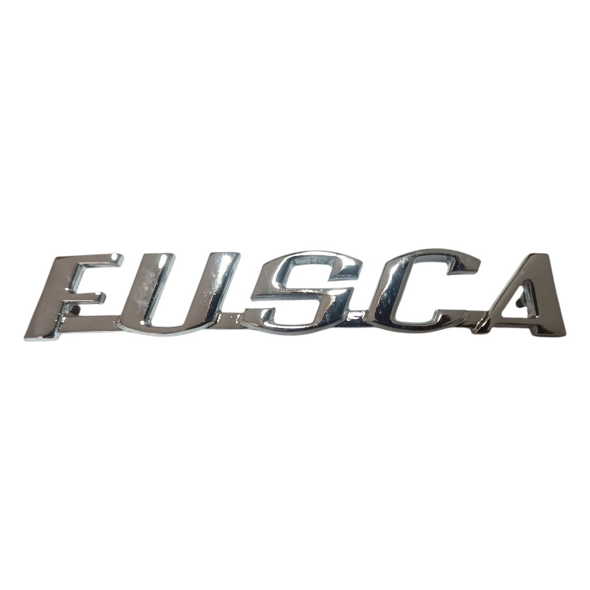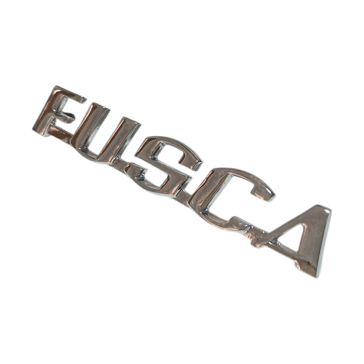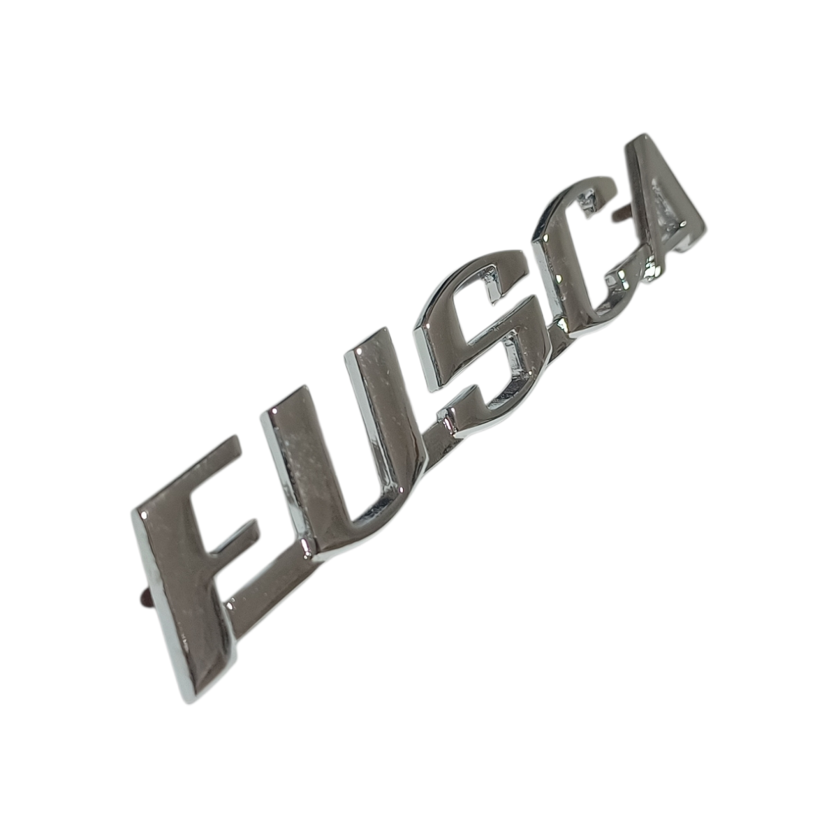 Emblema escrita fusca em metal cromado para fusca e derivados peça muito bonita e de ótima qualidade fixação por parafuso e porca